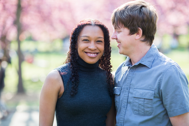 Murphy and Catlin took some time during our engagement session at the Brooklyn Botanic Garden, New York City to practice some of their dance steps. They looked pretty elegant together. Their exuberance and commitment to one another was clear in the care they took with one another.
